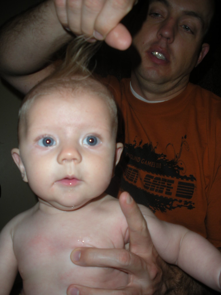 We had scheduled an appointment to have family pictures taken and had to cut all the boy's hair. I decided that it was time to cut Blake's too. He lost most of his hair on the sides, but the top was still growing. I just took a little off the top.